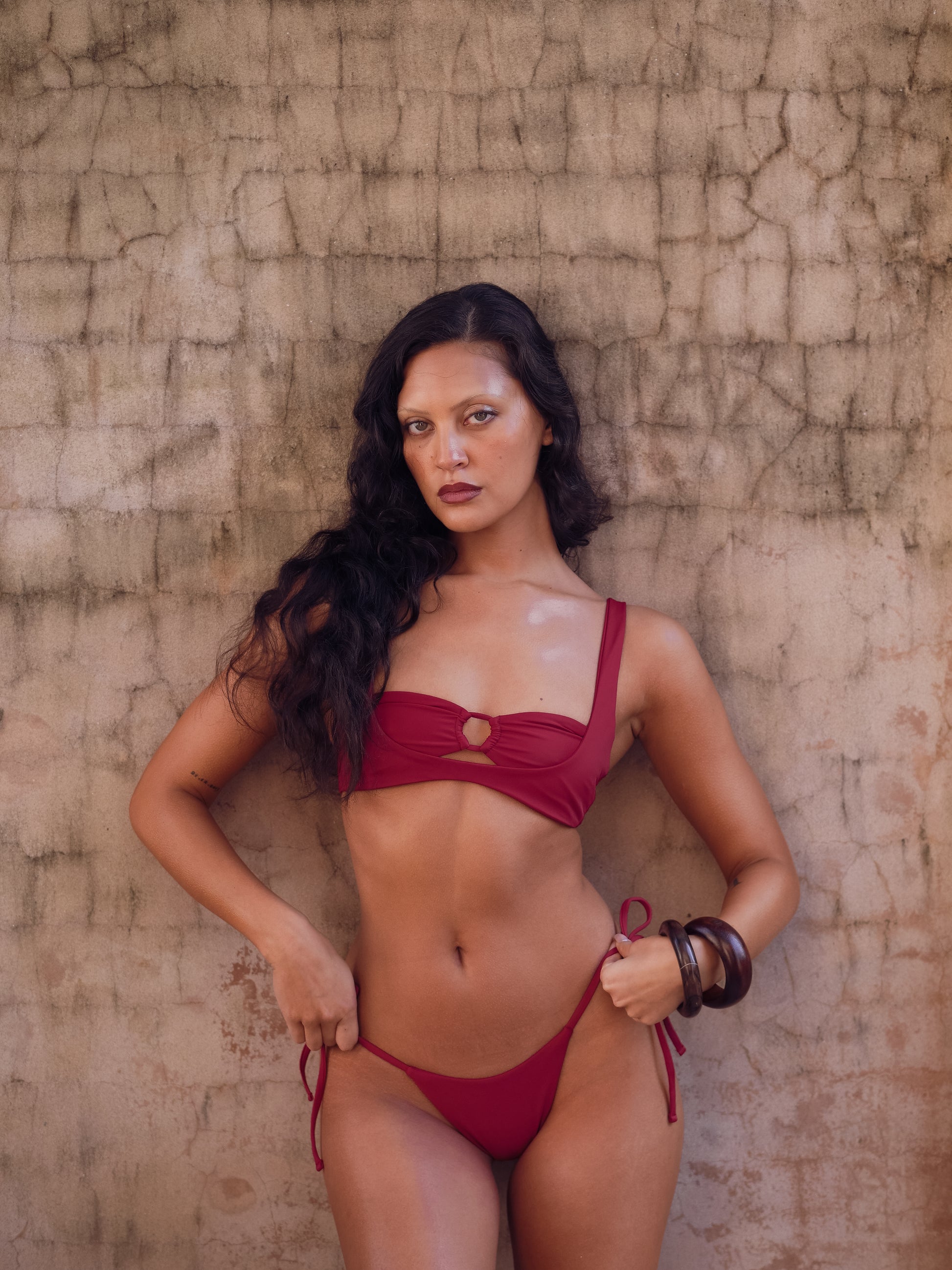 The Coco a classic triangle bikini bottom that is a medium- cheeky cut with adjustable side ties & fully lined