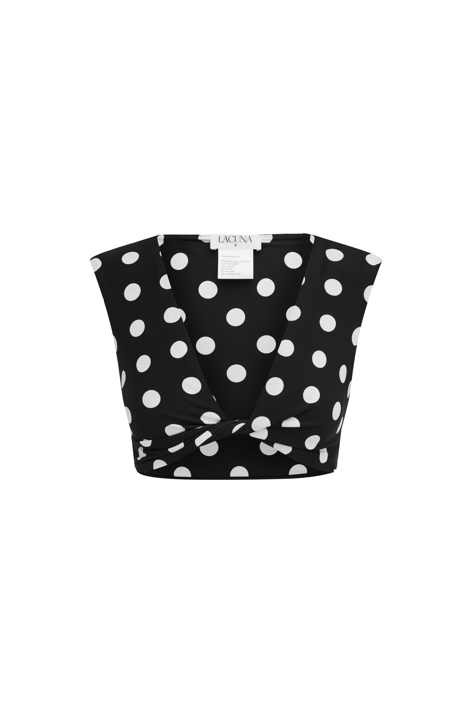 The twist design is made from our custom polka dot print and pairs back with our polka dot bottoms in the water then style it with a tailored short or denim which also works perfectly